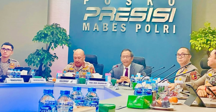 JAKARTA – Di depan lebih dari 750 anggota dari seluruh Indonesia, eks Menko Polhukam, Mahfud MD, mengajak Polri tetap tegar menjadi bhayangkara negara. Hal itu disampaikan dalam Forum Belajar Bersama PJU Posko Presisi yang diikuti pejabat Polri dari pusat sampai provinsi dan kabupaten/kota.