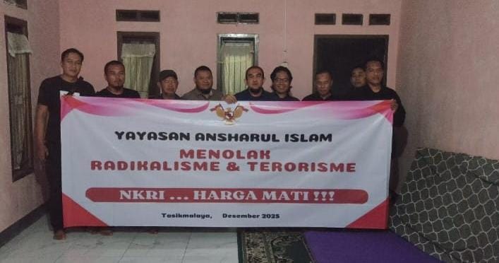 Tasikmalaya- Puluhan mantan narapidana terorisme (Napiter) asal Tasikmalaya, Jawa Barat, yang tergabung dalam Yayasan Ansharul Islam, melakukan deklarasi menolak radikalisme dan terorisme di Markasnya di Kota Tasikmalaya, Rabu (24/12/2025) malam.